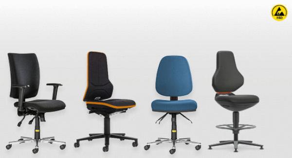 The chairs meet the requirements of the DIN EN 61340-5-1 standard and support the standard-compliant implementation of ESD protection measures. Their ergonomic design offers a high level of seating comfort and is ideal for continuous professional use in electronics production and testing environments.