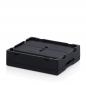 Preview: The image shows a black, rectangular container with rounded corners. The top has two small holes and is flat, giving a sturdy, solid impression.