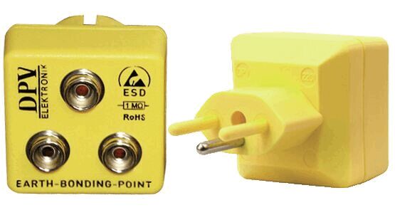 Preview: The image shows a yellow device with two round connectors and a plug. It is a grounding connector, labeled with "DPV" and "ESD", for electrostatic discharge.