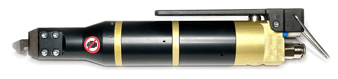 The DPP pneumatic off-cut remover enables PCBs to be cut quickly, efficiently and safely. The result is precise and clean cut edges. Thanks to interchangeable special steel blades in various thicknesses, the device can be flexibly adapted to individual requirements. A total of five different blade widths are available.