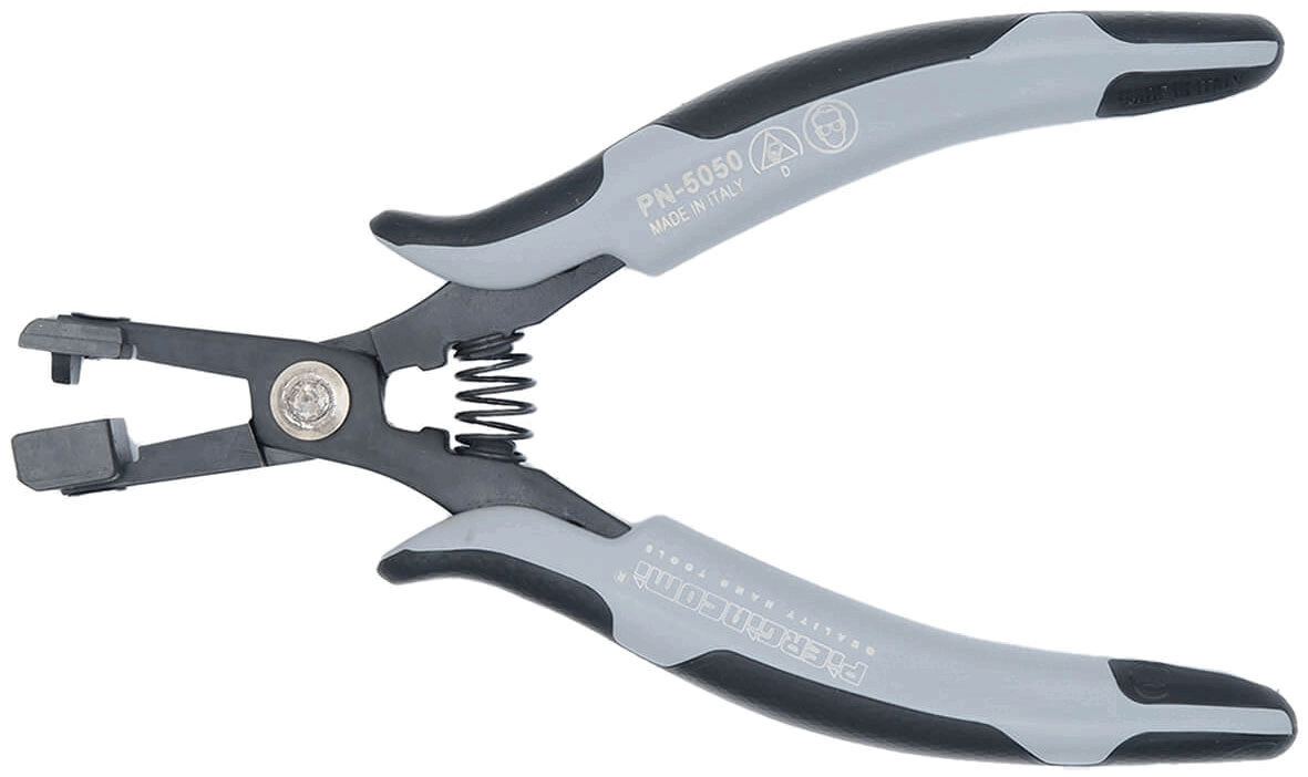 Piergiacomi ESD pliers are specially designed for working in EPAs. Made in Italy from high-quality carbon steel and with an anti-reflective phosphate coating, they offer a clear view of the workpiece. The ergonomic dolphin handle made of slip-resistant material ensures a secure grip, even during prolonged use.