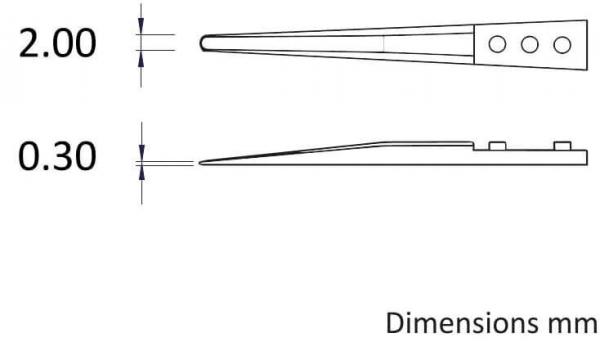 The tweezers with ceramic exchangeable tips are made of zirconia-reinforced aluminum oxide (ZTA), an advanced material known for its unique combination of strength (due to zirconia) and hardness (due to aluminum oxide). This composition results in tweezers with relatively low density, no open porosity and a very hard surface that ensures exceptional abrasion and wear resistance. The tweezers have excellent flexural strength and fracture toughness, making them ideal for intensive use.