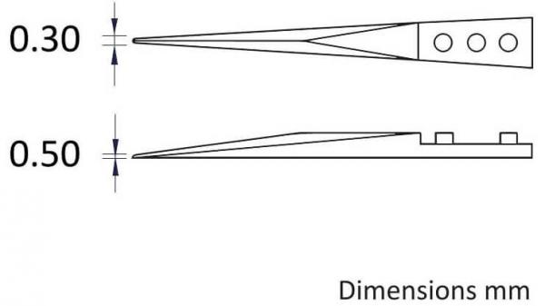 The tweezers with ceramic exchangeable tips are made of zirconia-reinforced aluminum oxide (ZTA), an advanced material known for its unique combination of strength (due to zirconia) and hardness (due to aluminum oxide). This composition results in tweezers with relatively low density, no open porosity and a very hard surface that ensures exceptional abrasion and wear resistance. The tweezers have excellent flexural strength and fracture toughness, making them ideal for intensive use.
