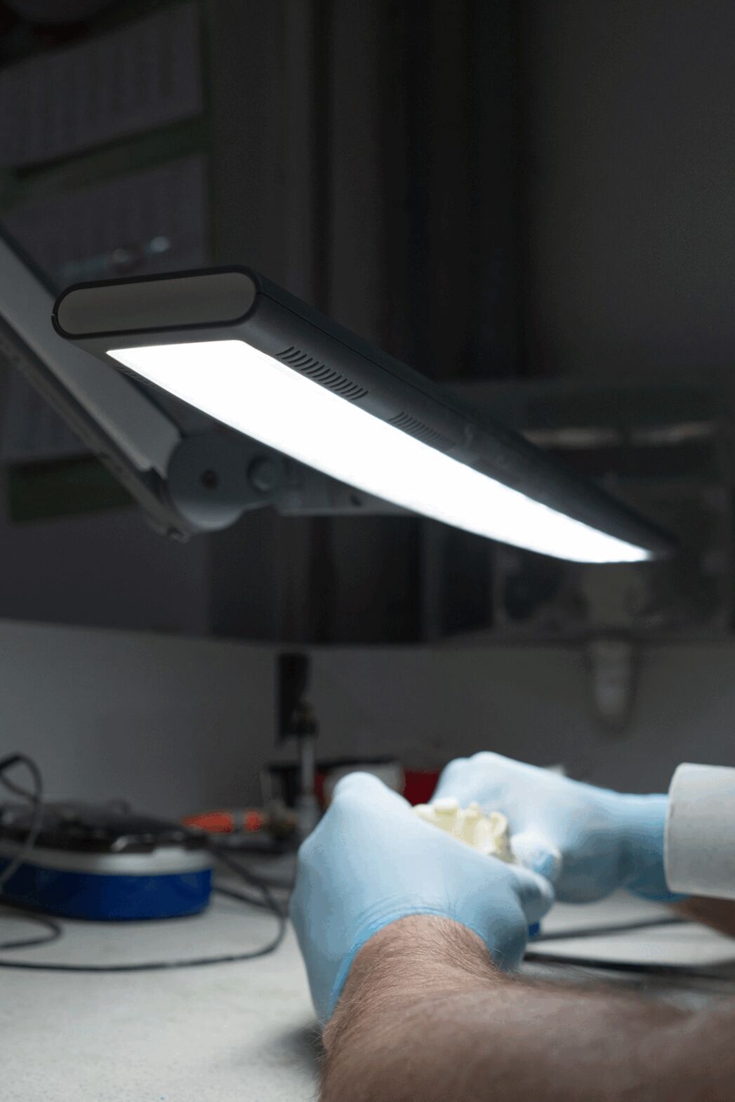 Die technischen Spezifikationen umfassen einen Lichtstrom von 2000 Lumen und eine Farbtemperatur von 6000 K, was eine klare und präzise Farbwiedergabe mit einem Index von über 95 ermöglicht. Die Maße der Leuchte betragen 650 mm in der Breite, 600 mm in der Höhe und 750 mm in der Tiefe, bei einem Gewicht von 3200 g. Das 2,4 m lange Netzkabel gewährleistet eine unkomplizierte Stromversorgung. Mit einer Leistungsaufnahme von nur 20 W und einer Beleuchtungsstärke von bis zu 4500 Lux ist diese LED-Leuchte sowohl energieeffizient als auch leistungsstark. Farblich in einem schlichten Weiß/Grau gehalten, fügt sie sich nahtlos in jede Arbeitsumgebung ein.Details