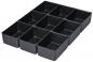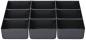Preview: Das Bild zeigt einen Organizer aus schwarzem Kunststoff mit neun quadratischen Fächern, angeordnet in drei Reihen und drei Spalten. Die Fächer haben gerade Kanten und sind einheitlich.