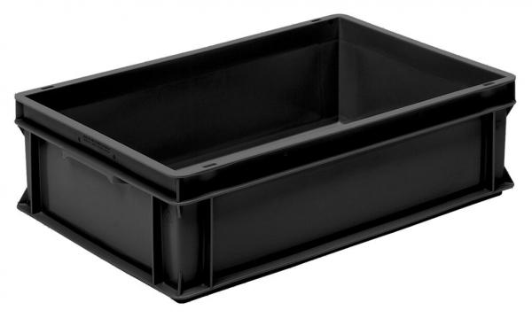 RAKO Eurobehälter aus elektrostatisch volumenleitfähigem Polypropylen, stapelbar.