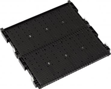 Preview: Das Bild zeigt einen quadratischen, flachen schwarzen Kunststoffbehälter mit vielen parallelen Rillen auf der Oberfläche. Er hat abgerundete Kanten und ist glatt, ideal für das Stapeln oder Lagern.