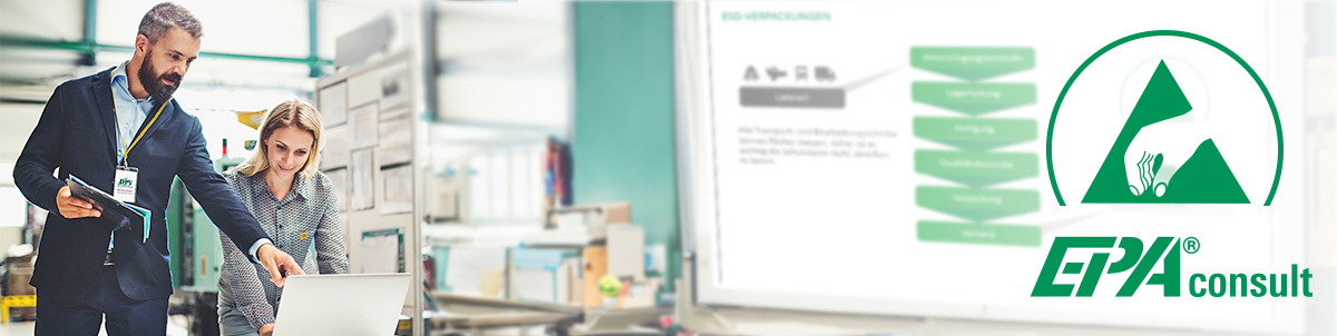 Wir bieten Ihnen im Rahmen unseres EPAconsult®-Gesamtprogramms kompetente Beratungen nach Ihren individuellen Erfordernissen. Beispielsweise die Bestandsaufnahme des bestehenden ESD-Schutzes oder die Bedarfsermittlung sowie die Erarbeitung eines ESD-Schutzkonzeptes mit konkreten Vorschlägen.