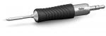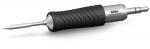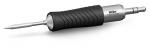 Das Bild zeigt einen Lot-Entlötsolder mit einem ergonomischen, rutschfesten Griff aus schwarzem Gummi und einem metallischen Einsatz. Der Solder hat eine schmale, gerade Spitze.