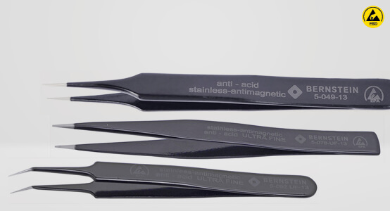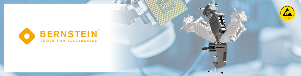 Als Spezialist für die Herstellung von hochwertigen ESD-Werkzeugen und Kugelgelenkschraubstöcken produziert Bernstein seit mehr als 50 Jahren Handwerkzeuge für Elektroniker und Feinmechaniker, die als leitfähige und ableitfähige ESD-Werkzeuge hergestellt werden, um elektrostatische Aufladung in der Elektronikfertigung zu verhindern.