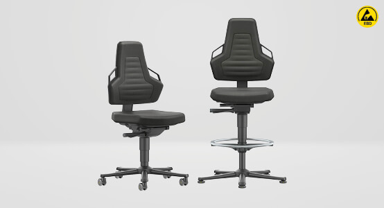 Der NEXXIT ESD-Drehstuhl ist der vielseitige Allrounder für Elektronikarbeitsplätze und bietet zuverlässigen Schutz vor elektrostatischer Entladung bei gleichzeitig hoher Ergonomie. Seine Synchronmechanik mit automatischer Gewichtsanpassung sorgt dafür, dass sich Sitz und Rückenlehne harmonisch an jede Bewegung anpassen und den Körper in allen Arbeitspositionen optimal unterstützen.