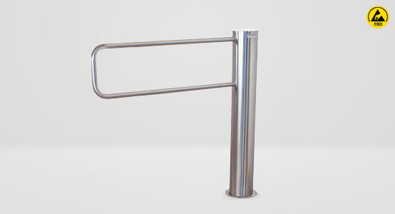 In ESD-geschützten Produktionsbereichen können bereits kleinste elektrostatische Entladungen zu kostspieligen Schäden führen. Das Absperrsystem COMPACT sorgt dafür, dass nur autorisierte Personen Zugang zu sensiblen Bereichen erhalten. In Verbindung mit einer Personenteststation wird der Personenableitwiderstand geprüft; bei Überschreitung der zulässigen Werte wird der Zutritt verweigert und akustisch signalisiert. Gleichzeitig verhindern die Drehsperren zuverlässig, dass mehrere Personen gleichzeitig passieren. Die motorbetriebenen Systeme überzeugen durch ihre kompakte Bauweise, hohe Stabilität und flexible Einsatzmöglichkeiten.