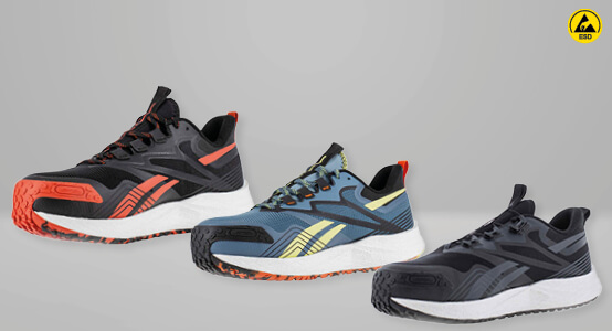 Reebok setzt sich dafür ein, sportliche Leistung und persönliche Erfolge durch innovative Produktgestaltung zu ermöglichen und strebt danach, Ihnen Fitness, Wohlbefinden und Sicherheit im ESD-geschützten Arbeitsalltag zu ermöglichen. Widerstandsfähige und hochreaktive Laufsohlen geben dauerhaft Energie zurück und sorgen für einen Arbeitsalltag wie auf Wolken. Zusätzlich bieten sie extra Stabilität und Unterstützung bei multidirektionalen Bewegungen.