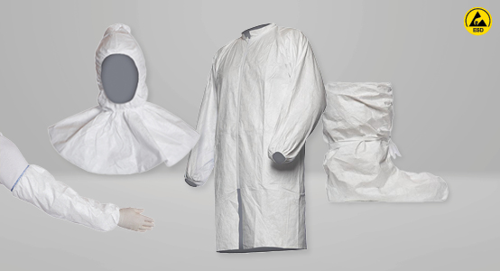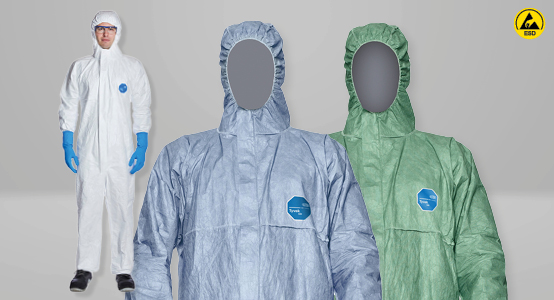 Sie bestehen aus leichtem, atmungsaktivem Tyvek®-Material mit hoher Barrierewirkung, sind fusselarm, silikonfrei und antistatisch ausgerüstet.